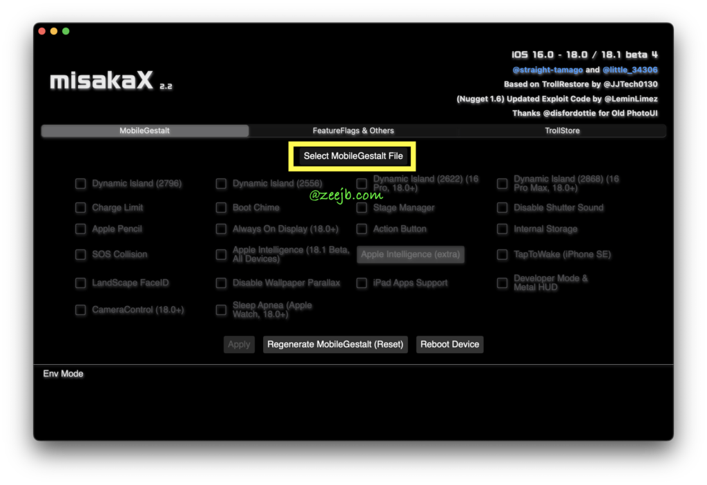 com.apple.MobileGestalt.plist. - Browse the feature list using the checkboxes or toggles for each available tweak.
